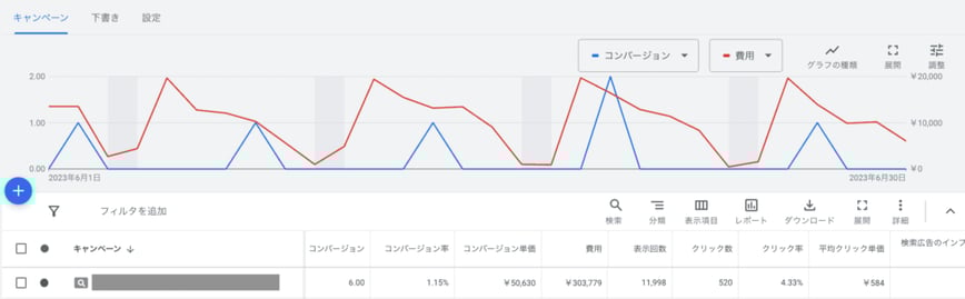 「予想CPA(コンバージョン単価)が1万円、月の広告予算10万円」で広告を行う場合、月に獲得できるコンバージョンは10件前後です。3件しか獲得できないこともあれば予想以上に15件獲得できることもあるでしょう。1ヶ月の結果で成果の良し悪しを判断するべきではありません。