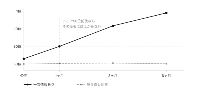 大規模なリライトによって順位が動くことはありますが、それだけの工数をかけるなら書き直したほうがいいケースも多いです。「時間が経てば上がってくる」という期待は、現状では持ちにくいと考えておいたほうが現実的です。